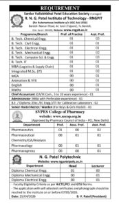 Established in 1997 as a Center for Excellence, N. G. Patel Polytechnic [NGPP] is recognized by All India Council for Technical Education (AICTE), New Delhi and Gujarat Technological University (GTU), Ahmadabad.The institute is situated near Isroli-Afwa in Bardoli taluka of Surat District, about 4 KMs away from Bardoli Town. The institute provides students all possible infrastructure and educational facilities such as neat and airy classrooms, tutorial rooms, fully equipped laboratories, to empower them in communicative English, computer center, library, workshop, playground and canteen. The institute has emerged as forerunner in the field of imparting quality education by touching peak heights of result by falling under state level university ranking in top 10, professional training and development and good placements in multinational companies.
